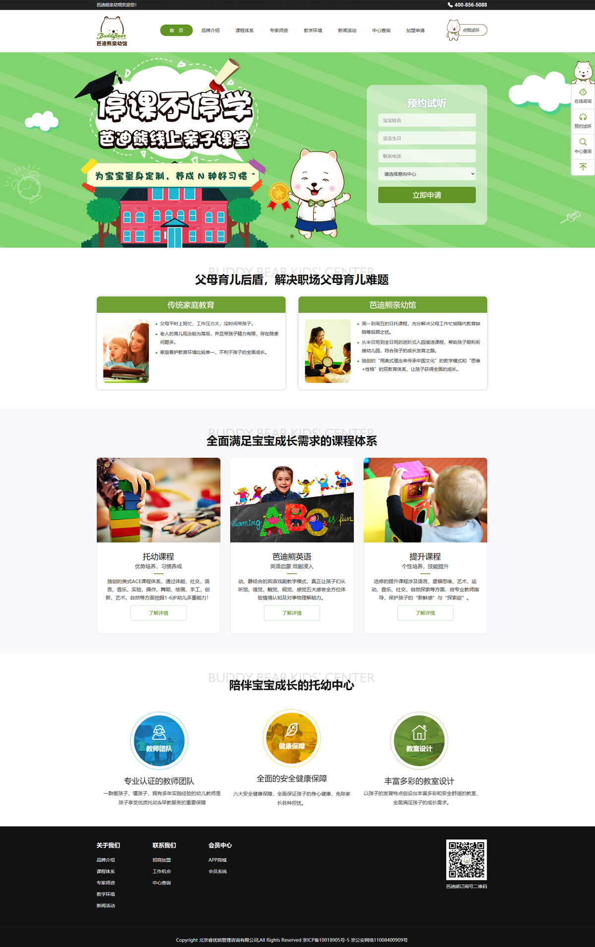 “芭迪熊親幼館(Buddy Bear Kids' Center)隸屬于北京睿優(yōu)銘管理咨詢有限公司教育旗下的高端社區(qū)型托幼早教品牌,秉承“父母育兒后盾”的辦園使命,沿襲悅寶園純美式早教理念,50余年的教研歷史,分別從幼兒日托、早期教育、英語啟蒙、父母課堂等多個維度給予家長真正的后盾支持。